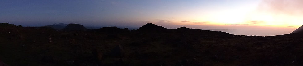 J’arrivai finalement en un lieu fort agréable au pied d’une étable et d’une table de pique-nique à 850m d’altitude. Apres un bref repos, quelques photos du coucher du soleil, je laissai passer le flot de visiteurs jusqu'à 19h puis à 21h je me dirigeai vers le sommet en arpentant un champ chaotique parsemé de pierres volcaniques.